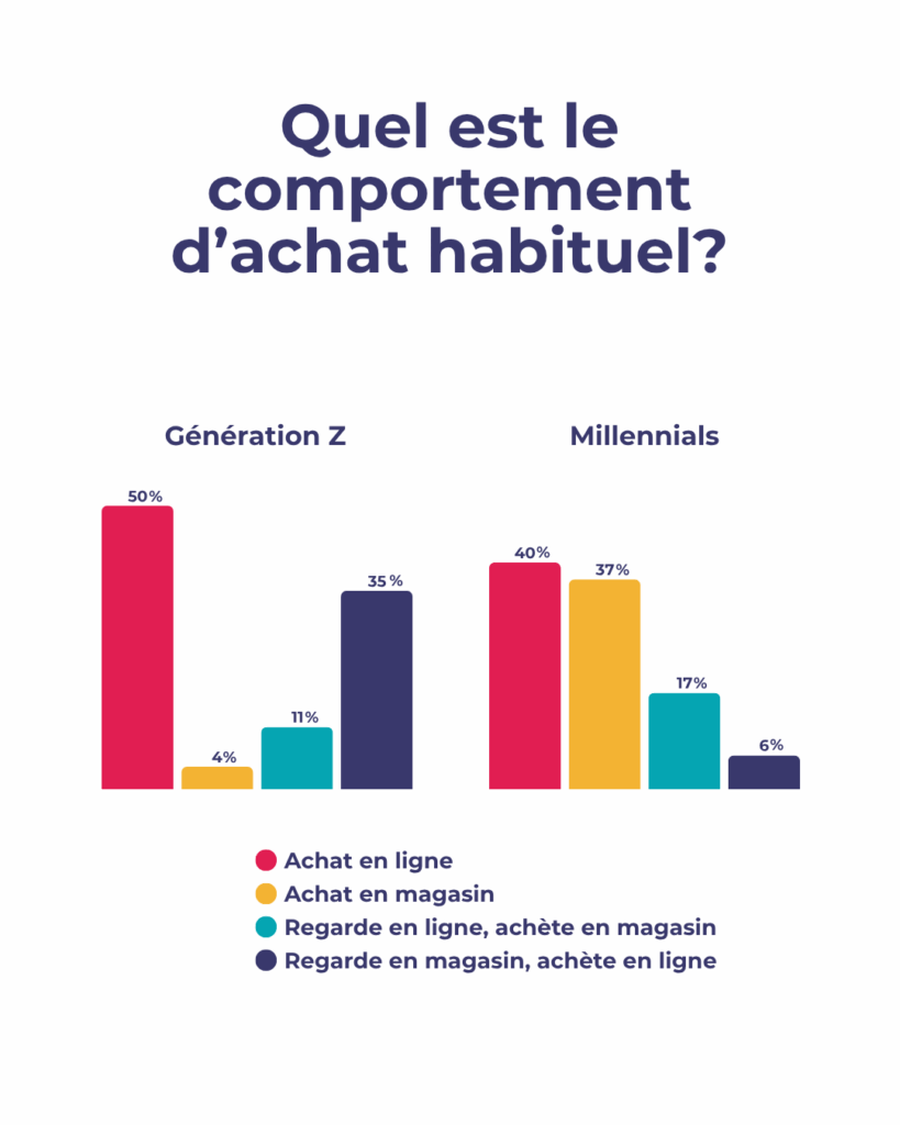 Malgré une nette préférence pour la carte de crédit ou de débit, les Millennials adoptent un comportement d’achat mixte. Les routines d’achats en ligne et en magasin sont très proches : 40 % achètent en ligne, tandis que 37 % préfèrent se rendre en magasin. Cette différence minime montre que cette génération valorise autant la rapidité du commerce en ligne que l’expérience en magasin physique.